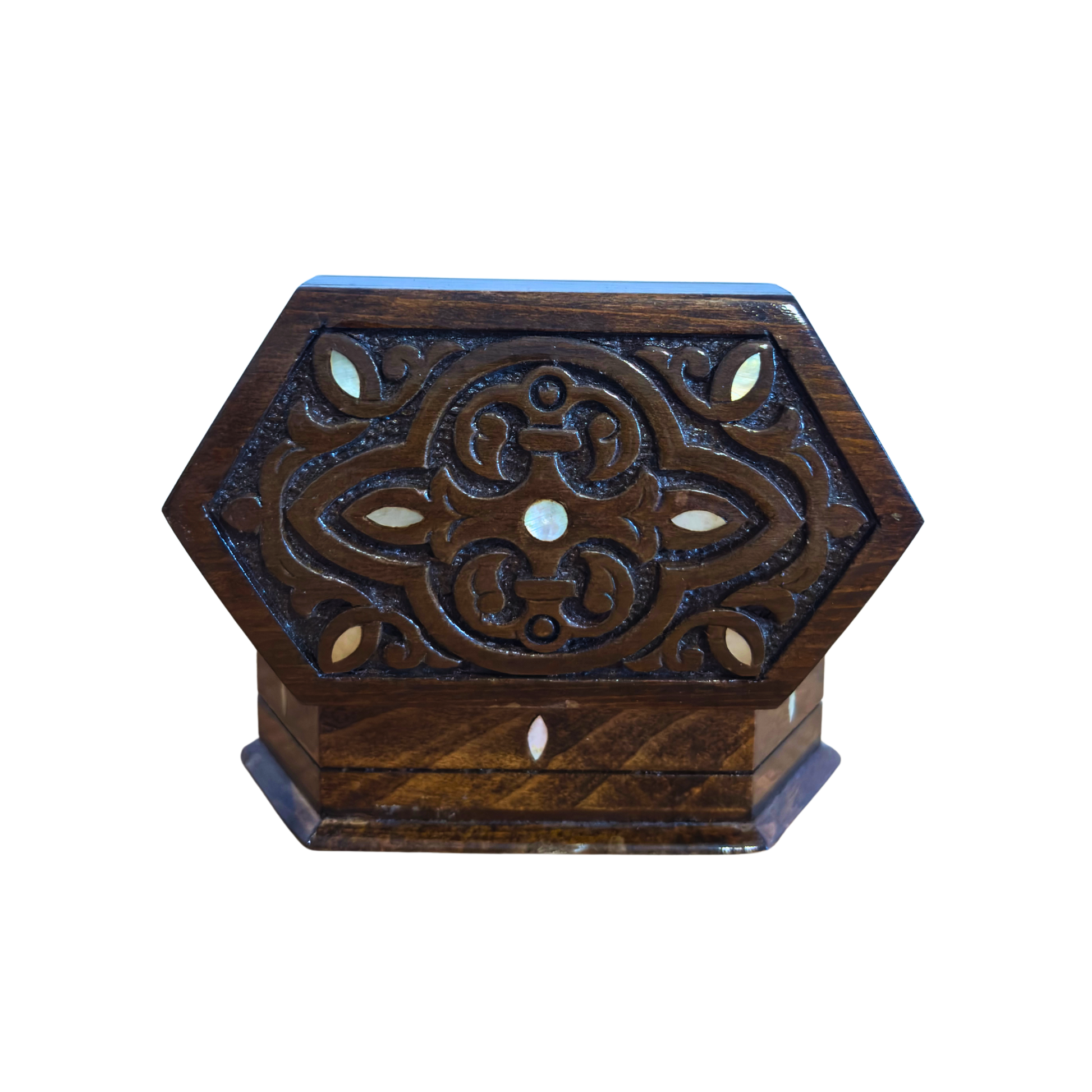 Boîte en Bois de Hêtre Sculptée à la Main avec Nacre et Intérieur en Velours – Design Oriental Intemporel