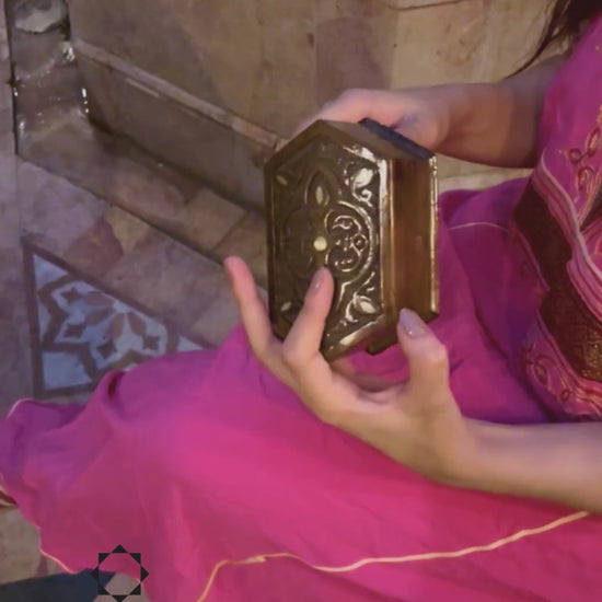Cette boîte damasquine en bois se distingue par son sculptage manuel minutieux et ses motifs orientaux raffinés qui célèbrent la tradition artisanale syrienne.