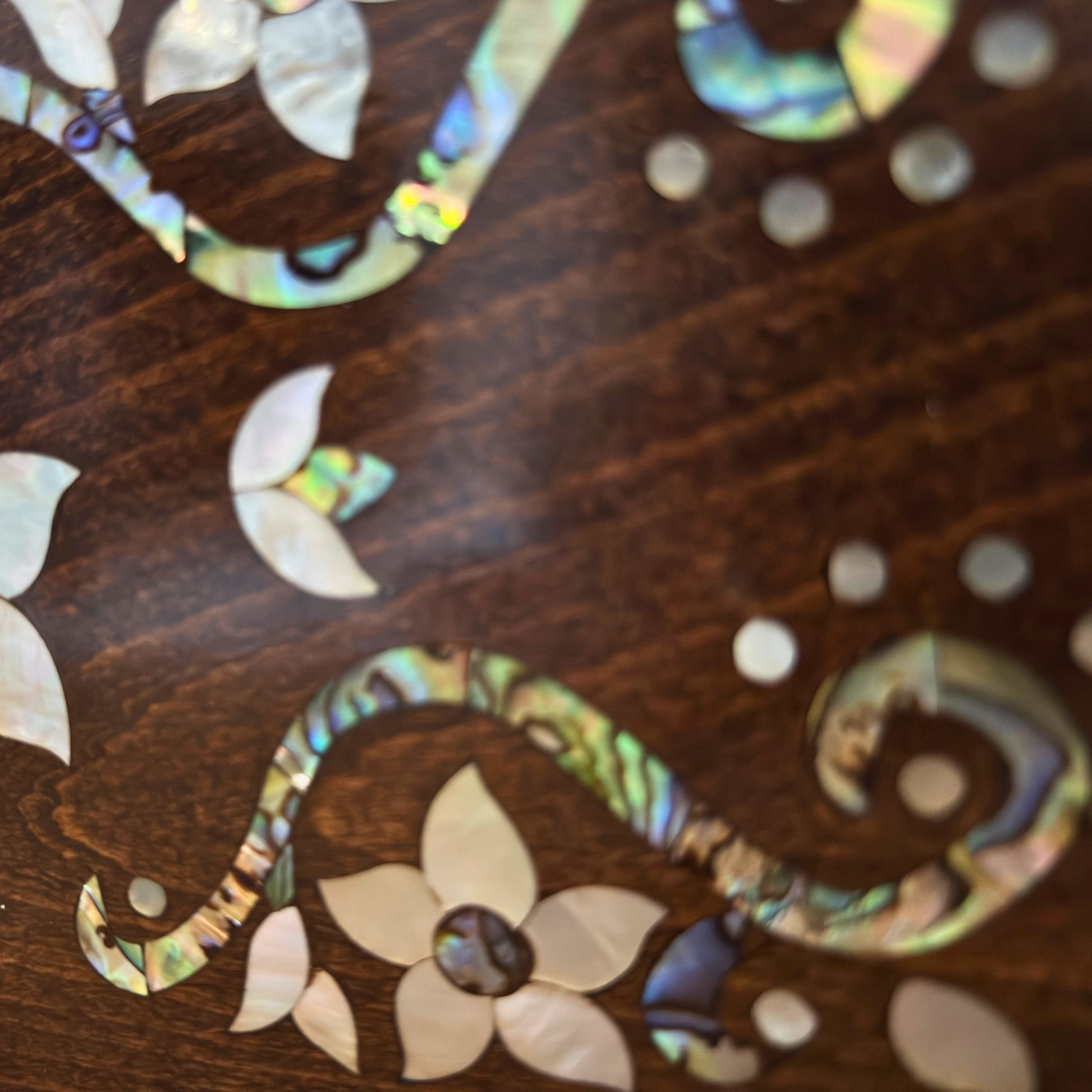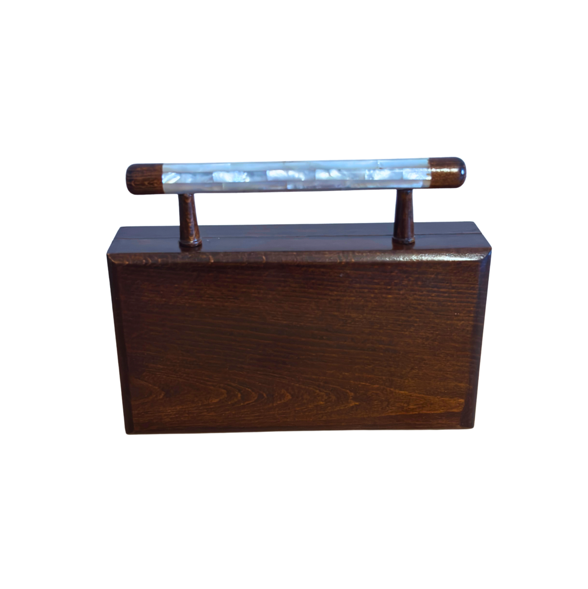 De Tuin van Noor – Handgemaakte Damascener Clutch van Notenhout met Bloemen-Inleg van Parelmoer