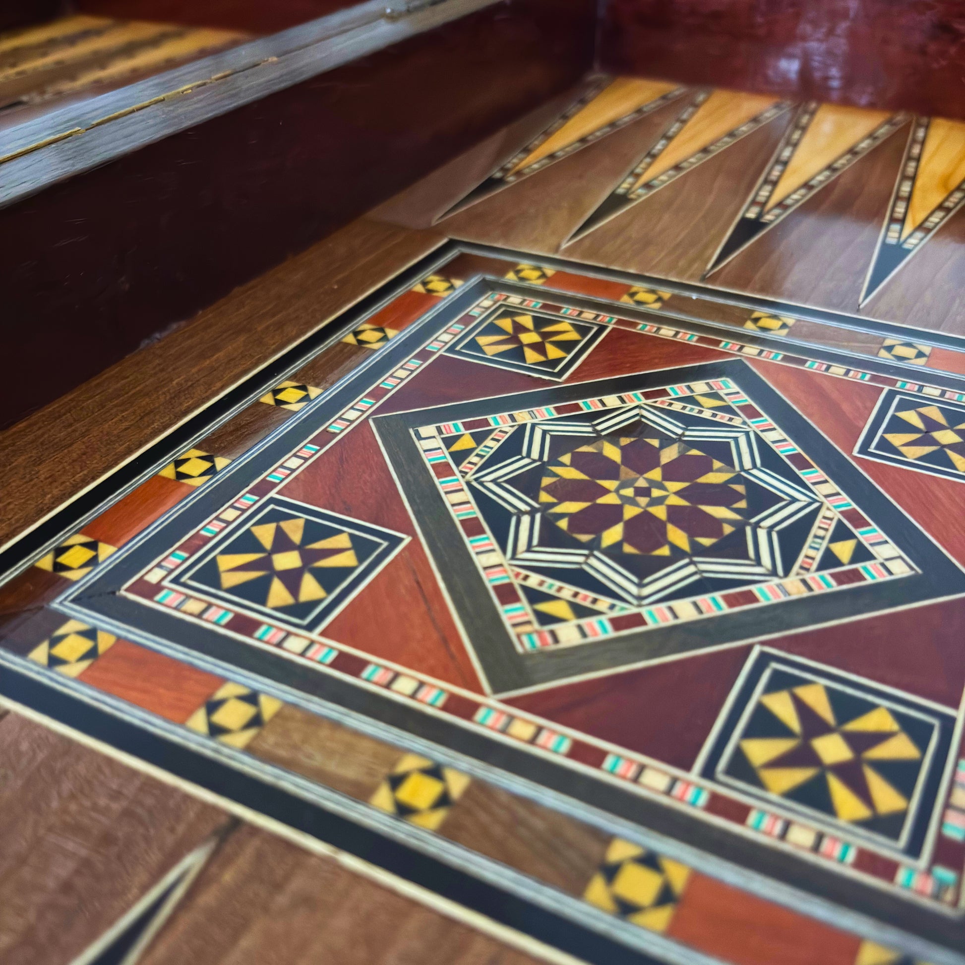 Mesa Damasquina de Xadrez e Backgammon Feita à Mão por Gaby Al Dayeh – Design Clássico com Madrepérola