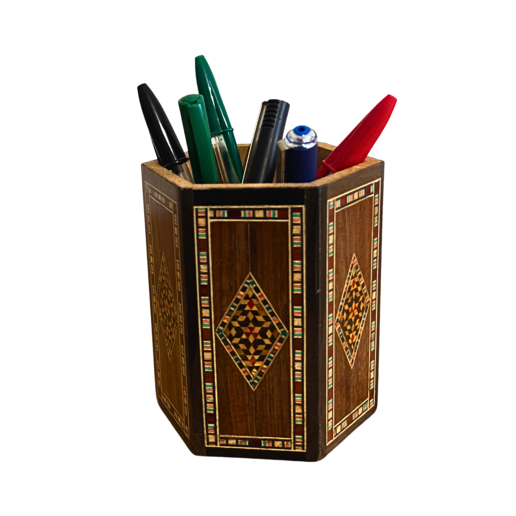Porta-Canetas Damasquino em Madeira por Gaby Al Dayeh – Madeiras Naturais & Elegância Artesanal